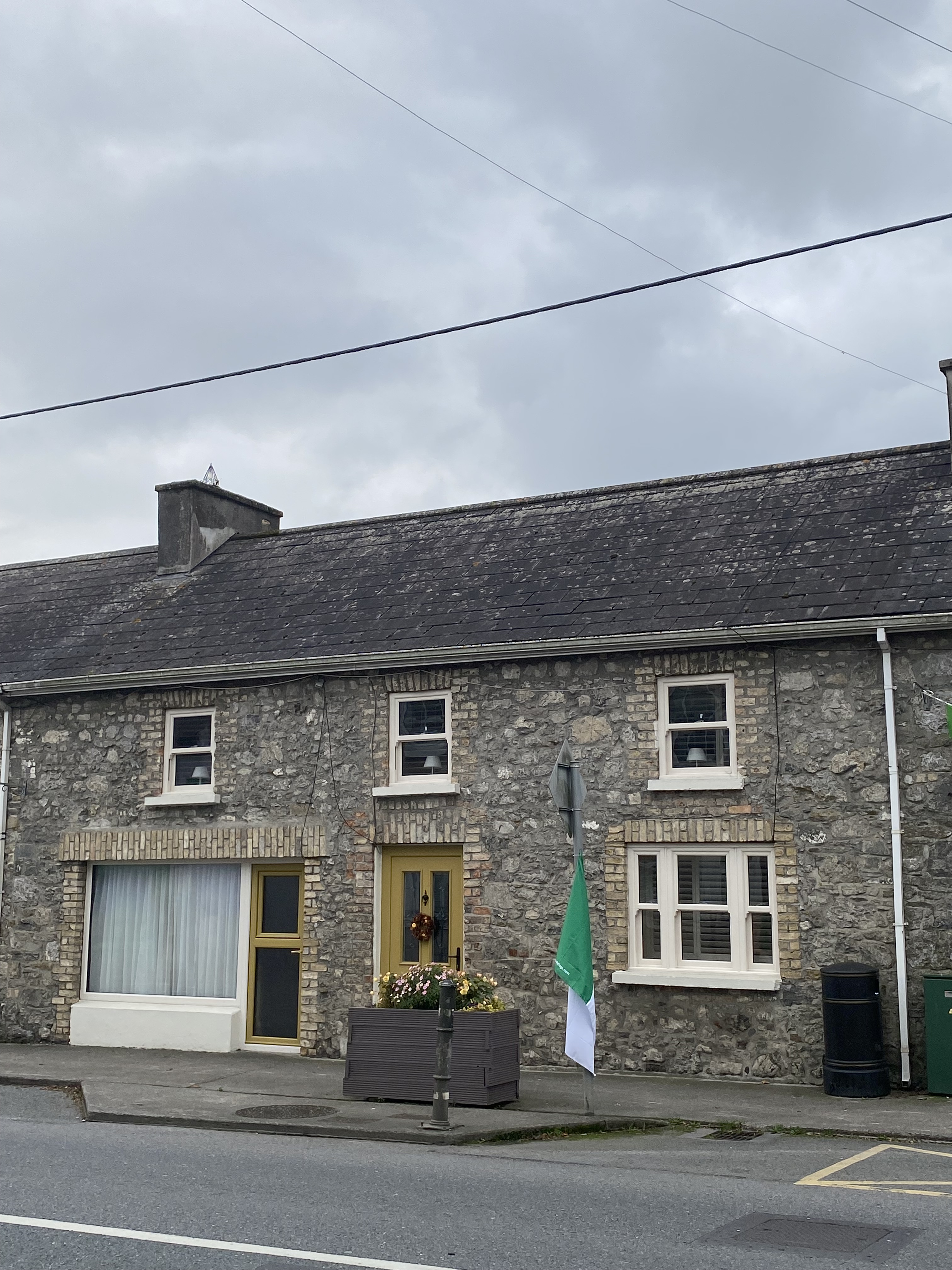 When I visited Ferbane, Oct 2023, unfortunately it was a very short stop and we’d reached the village toward the end of the day. I was driving from Dublin across to Galway and it was pelting down rain as a storm was lashing the whole of the British and Irish islands.