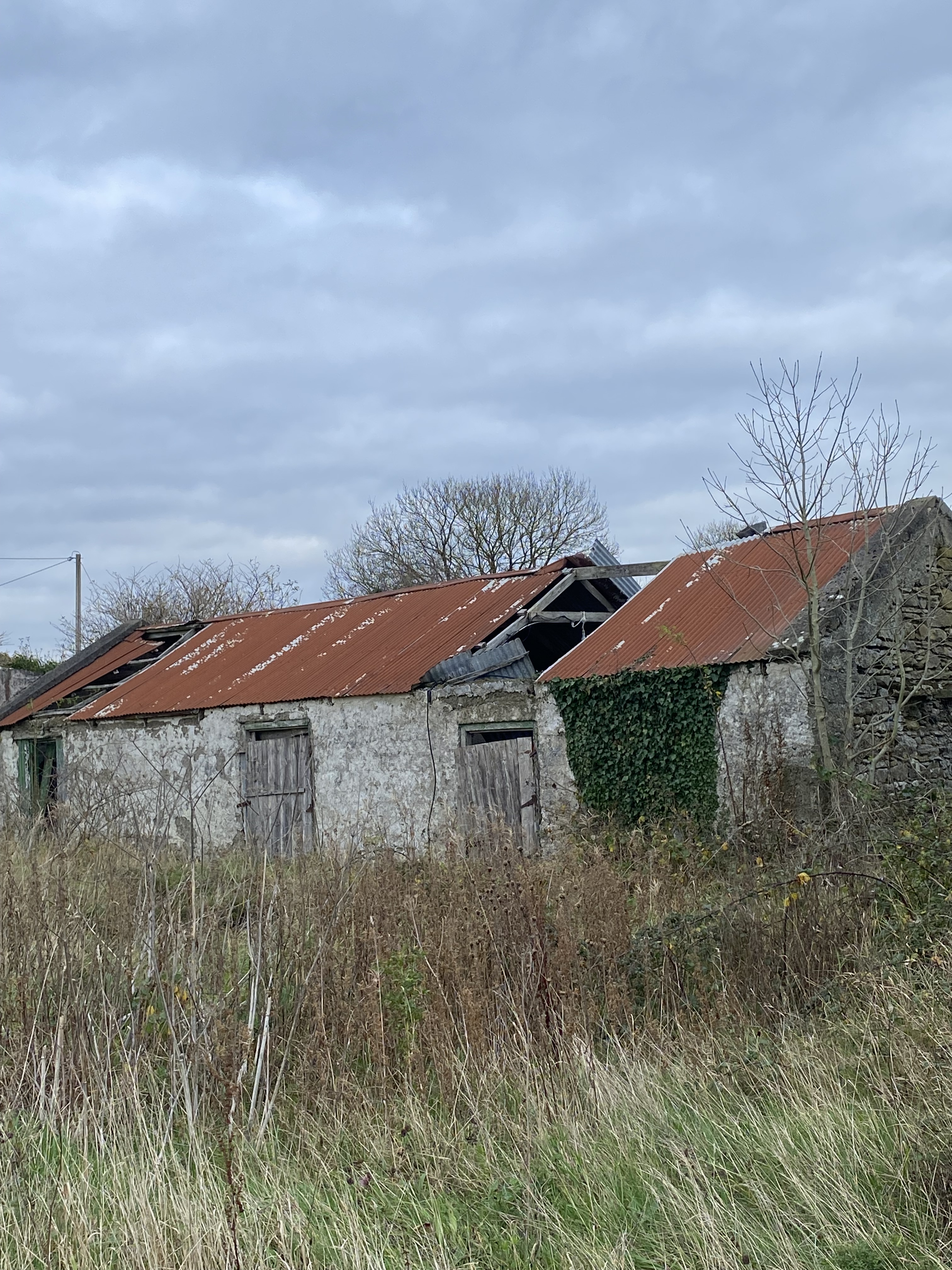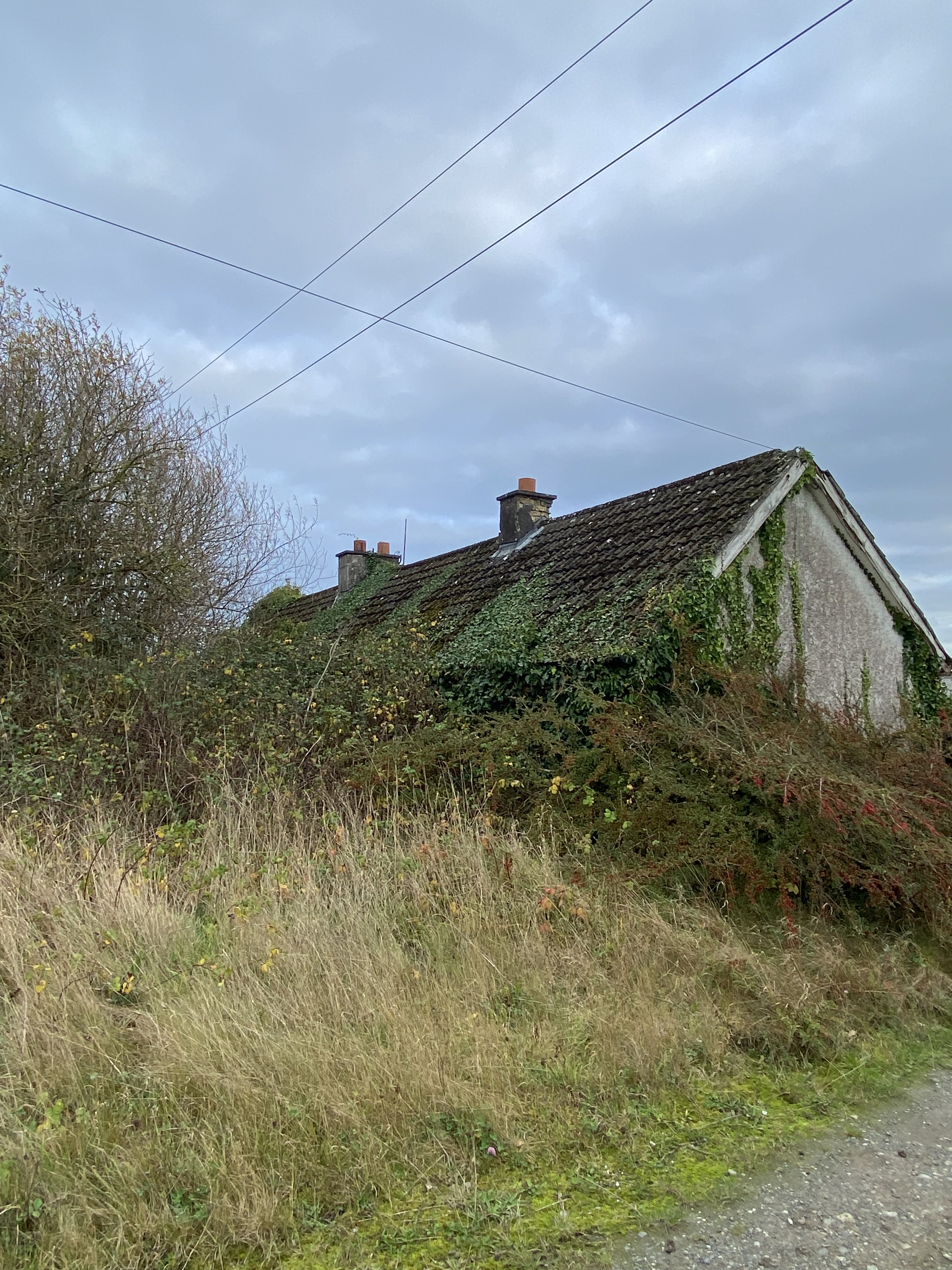 By sheer fortune in November 2024, the ruins I was taking pics of from the road caught the attention of the nearby owner who it turns out was distantly related to the families I was interested in, namely the Cantwell’s and that the Larkins, now all passed on, had lived several generations in and around nearby Cantwell Lane. And, that the house ruins were still there, as were current dwellings now owned by Egan’s and how to get there by way of a nearby adjacent laneway. What a gift! While Cantwell Lane wasn’t what I’d describe as necessarily signposted, our instructions to get there were amazing. Take a right when you get to the sign of the walking man, that’s Cantwell Lane!