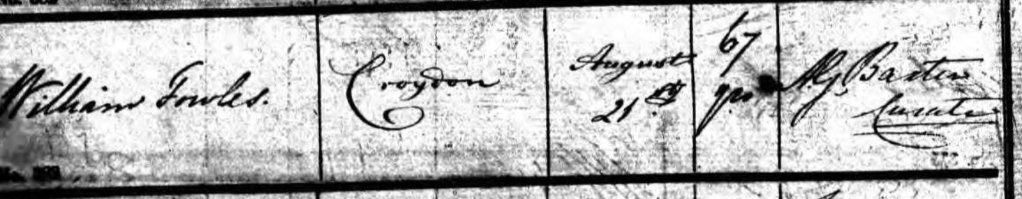 William Fowles (my ancestor) was baptised on the 20th October, 1805 at St John the Baptist, Croydon Surrey England.