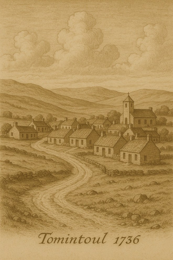The formal layout of the ‘new’ township of Tomintoul started in 1776. The Duke of Gordon designed and laid it out. The village had earlier been a collection of turf huts. These huts were on modest tenanted farms, like the one where James and Anne may have lived. Tomintoul had sat on the line of an old military road. This was remade into a “soldiers road “during the 1745 Jacobite rebellion.