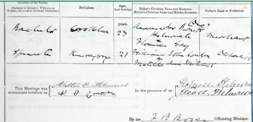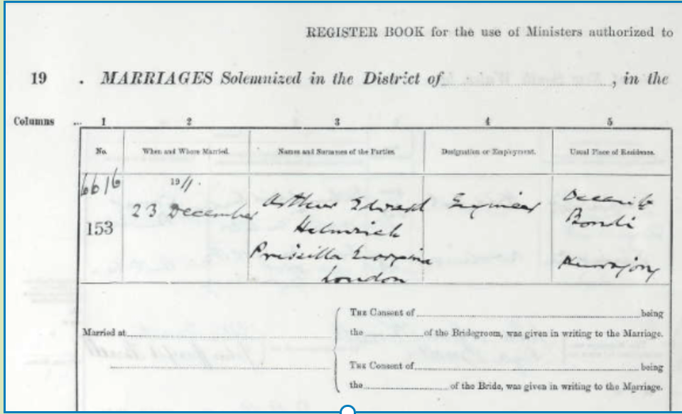 Their wedding was on the 23rd December, 1911. Witnesses at the wedding were Arthur’s brother George and sister Florence Helmrich.