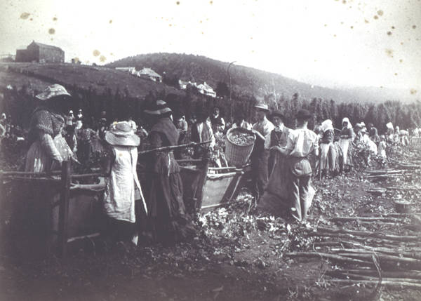 They were farming hops which were introduced to the area in 1846 and must have done reasonably well at it. The hop harvest lasted about five weeks and in their day the tender vines grew along slender saplings as opposed to string vines. All the picking was done by hand and the goal was to pick as many bushels per day as one could. The work was laborious and energy intensive. Francis introduced all of his children to hop picking in the paddocks from a young age. His son William went onto pick for many years into his own older years.