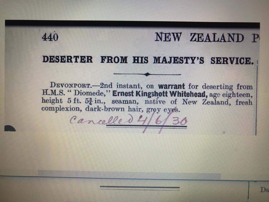 Mick had been in service on-board the HMS Diomede (D92) and was a Stoker in the New Zealand Division of the Royal Navy. The NZDRN was the precursor to the Royal New Zealand Navy which became its own entity in 1941. Mick decided the navy life wasn’t for him and took off in 1930. This made its way into the New Zealand papers. The family story was that the ship docked in Sydney and Mick decided not to return but did spend the rest of his life worried that the navy would catch up with him. I suspect he would have fared fare worse if this hadn’t been done during peacetime.