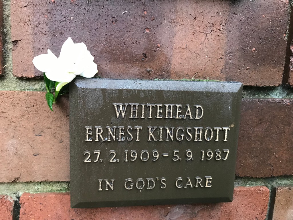 Whitehead, Ernest Kingshott, (Mick). September 5, 1987. loved husband of Dorothy (deceased) and Neva (deceased) loving father and father in law of Lorraine and Bob, Beverley and Kalvin, Hilary and David, Barry and Maisie, Robert and Maureen, Peter and Flo and Roy and Pat. Fond grandfather and great-grandfather of their families.